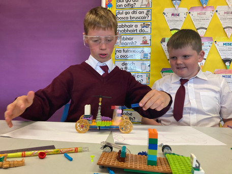 Our 4th Class students have been exploring magnetism for the last 2 weeks. To finish off, they designed and made magnetic cars using cardboard, Lego and K’nex.